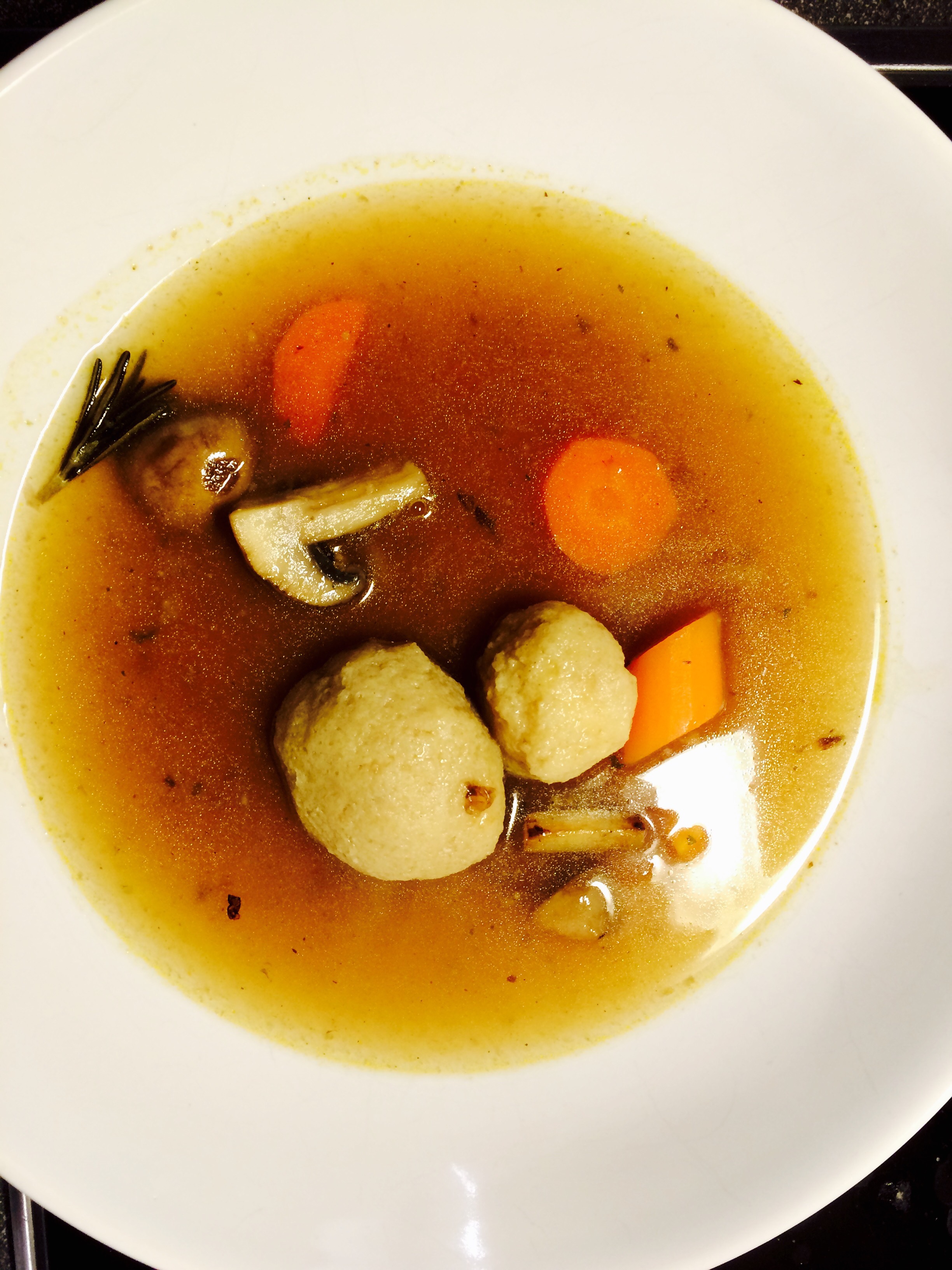 Matzo/matze or Matza balls is a dumpling soup made of unleavened bread crumbs mixed with eggs. It’s a dish traditionally eaten during the Passover holiday, but it can be enjoyed all year long. It’s simple, requires no special skills and uses another staple of traditional Ashkenazi cuisine: Chicken soup a.k.a the “Jewish Penicilin”