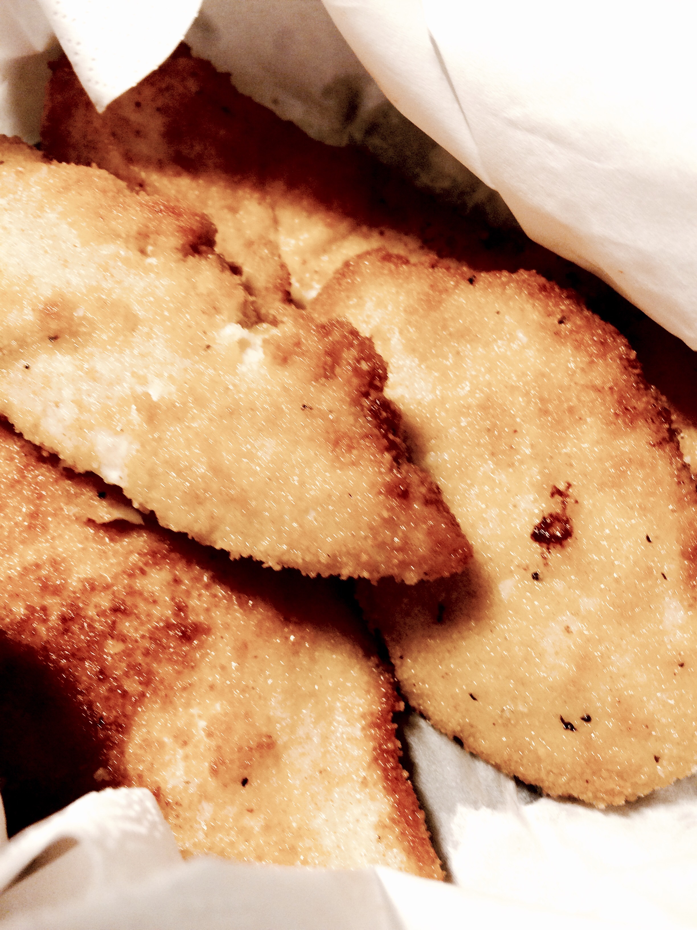 Is there anything more delicious than hot bits of crispy breaded meat? When I was a kid my father used to imitate us trying to pronounce “shnitzel” correctly and to that day still calls them “snitshel” when he prepares them for us. To me, they evoke family holidays by the sea and are forever associated to the scent of sunscreen, freshly squeezed orange juice, and the gentle finger burn of the warm pita bread & salty fries from the nearest food stands. As the winter in Helsinki seems to linger for a bit longer, I will use these golden treats are a joyous reminiscence of summer food!