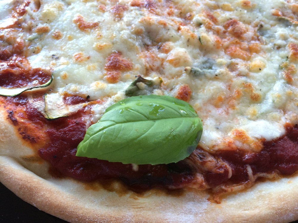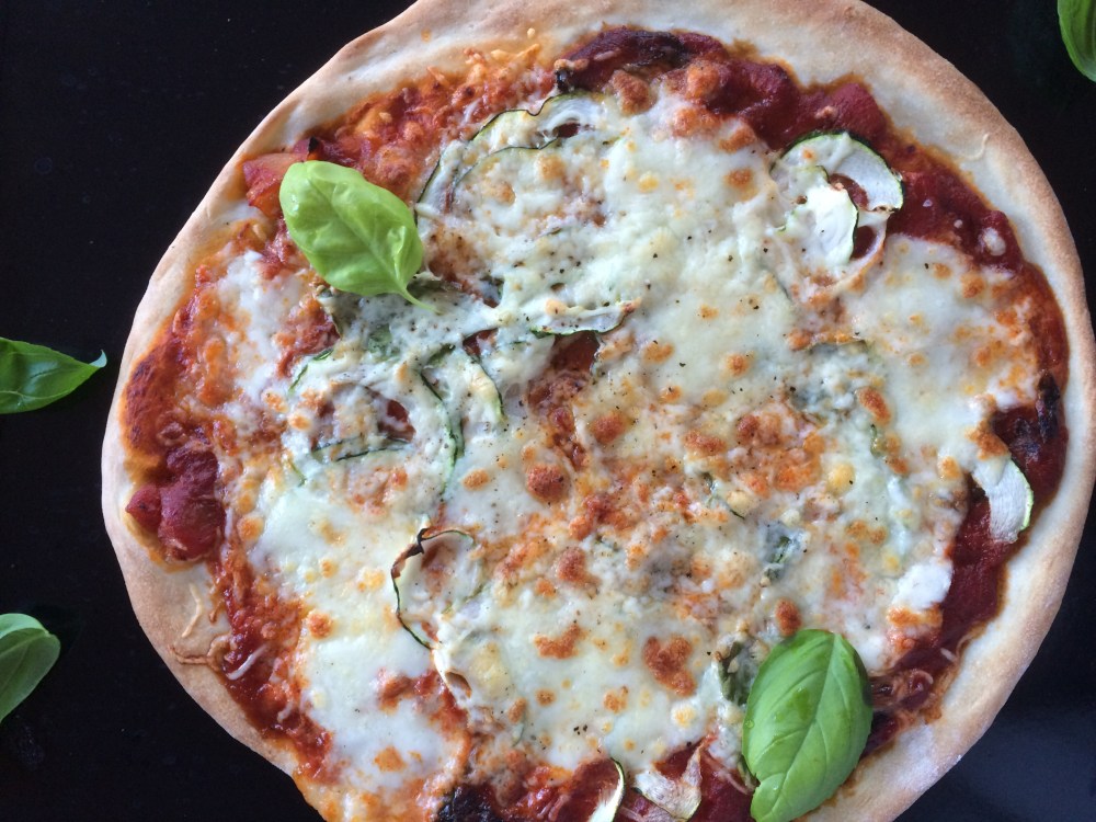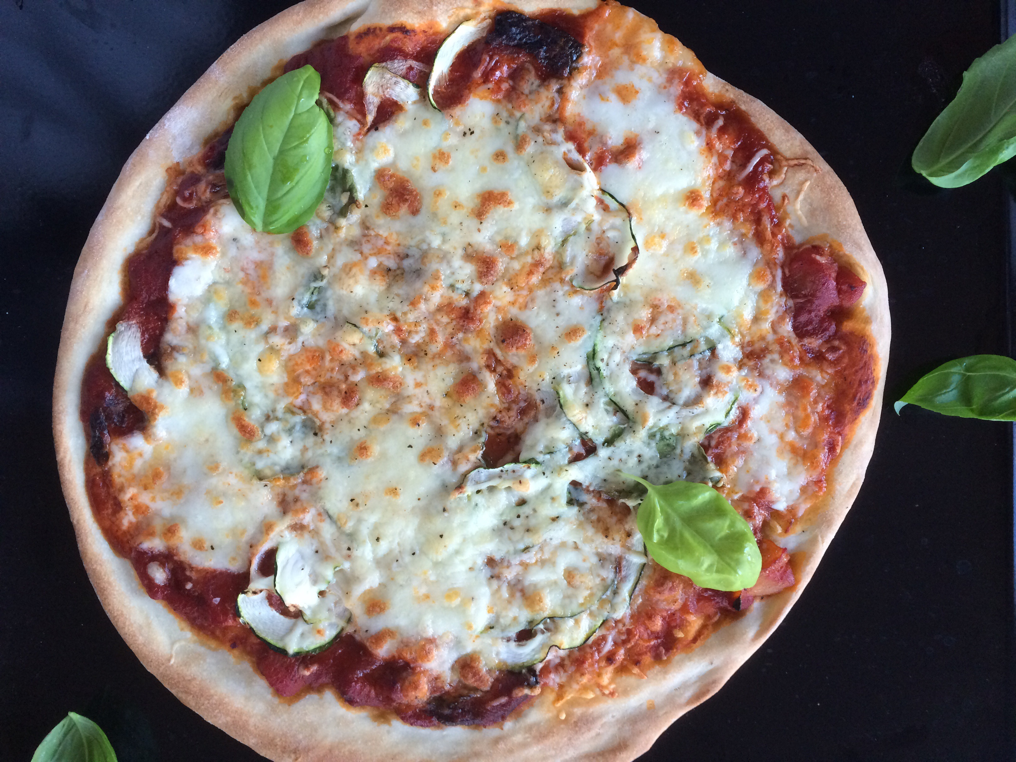 If you have a Pizza stone .. And I recommend you do; place it in your oven as it preheats to 250C, and divide your dough in 4 or 5 balls. Quickly work the doug on a wells floured surface until it forms a pizza shape ( don’t worry about it being perfect!), place it on the stone or on a tray covered with baking paper and add the tomato sauce, then simply select your toppings and add as much grated cheese as you dare! Place your pizza in the middle of the oven for ~15 minutes or until the bottom is cooked & the toppings look ready.