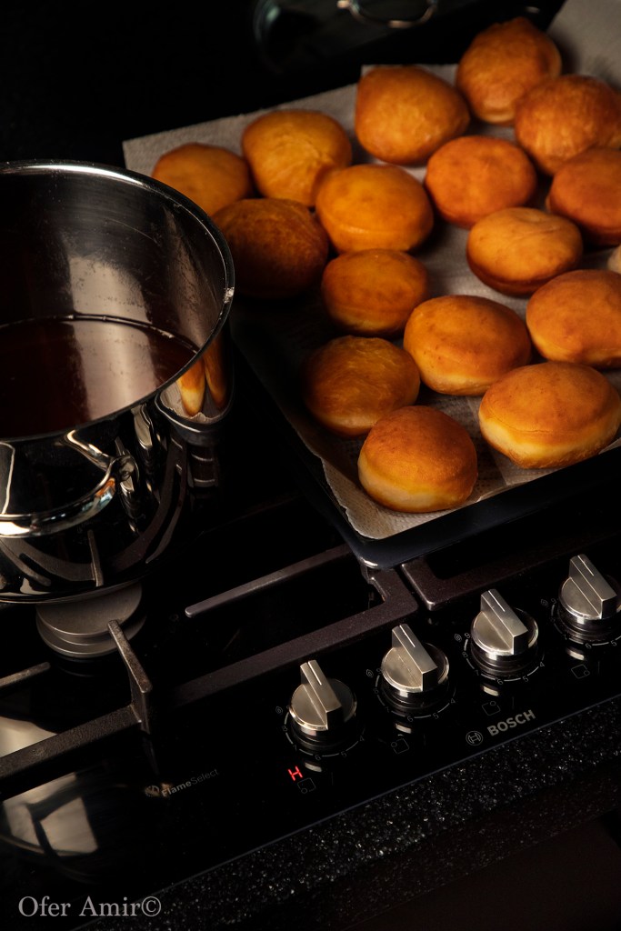 - Leave to cool on some absorbing paper and inject strawberry/cherry jam into the donut.